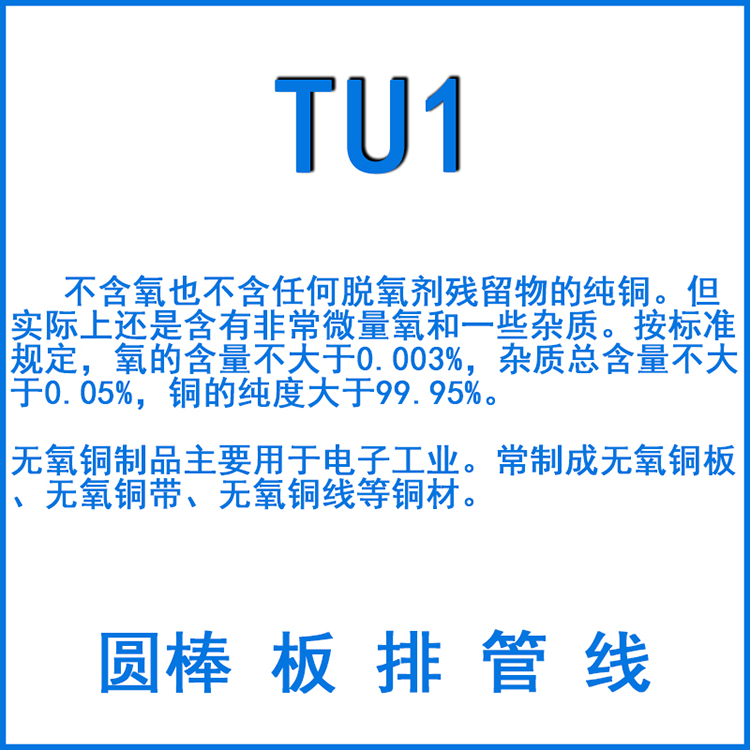 根據含氧量和雜質含量,無氧銅又分為一號和二號無氧銅。一號無氧銅純度達到99.97%,氧含量不大于0.003%,雜質總含量不大于0.03%;二號無氧銅純度達到99.95%,氧含量不大于0.003%,雜質總含量不大于0.05%。